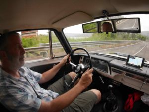 Raining. ‘I’ve been driving all night, my hands ‘re wet on the wheel.’